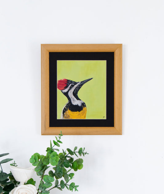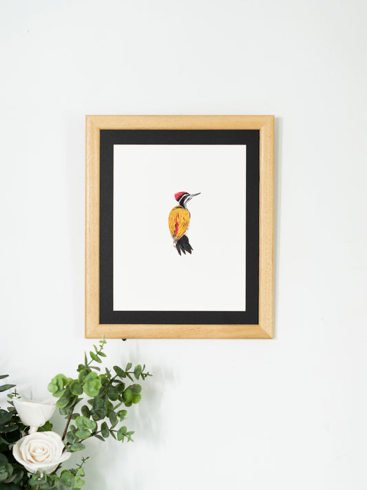 Black-Rumped Flameback Woodpecker : Original Gouache Painting