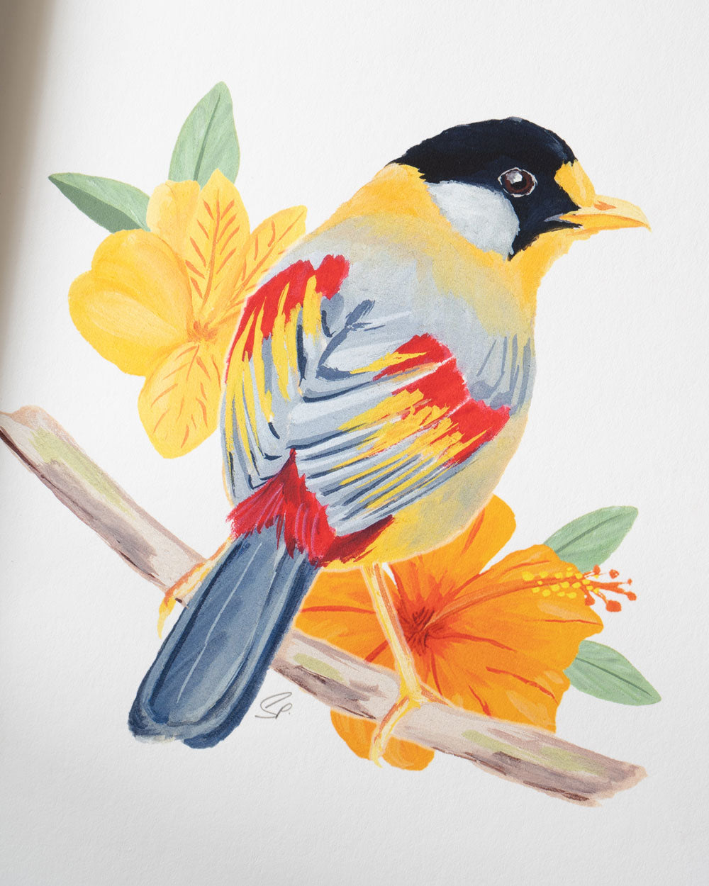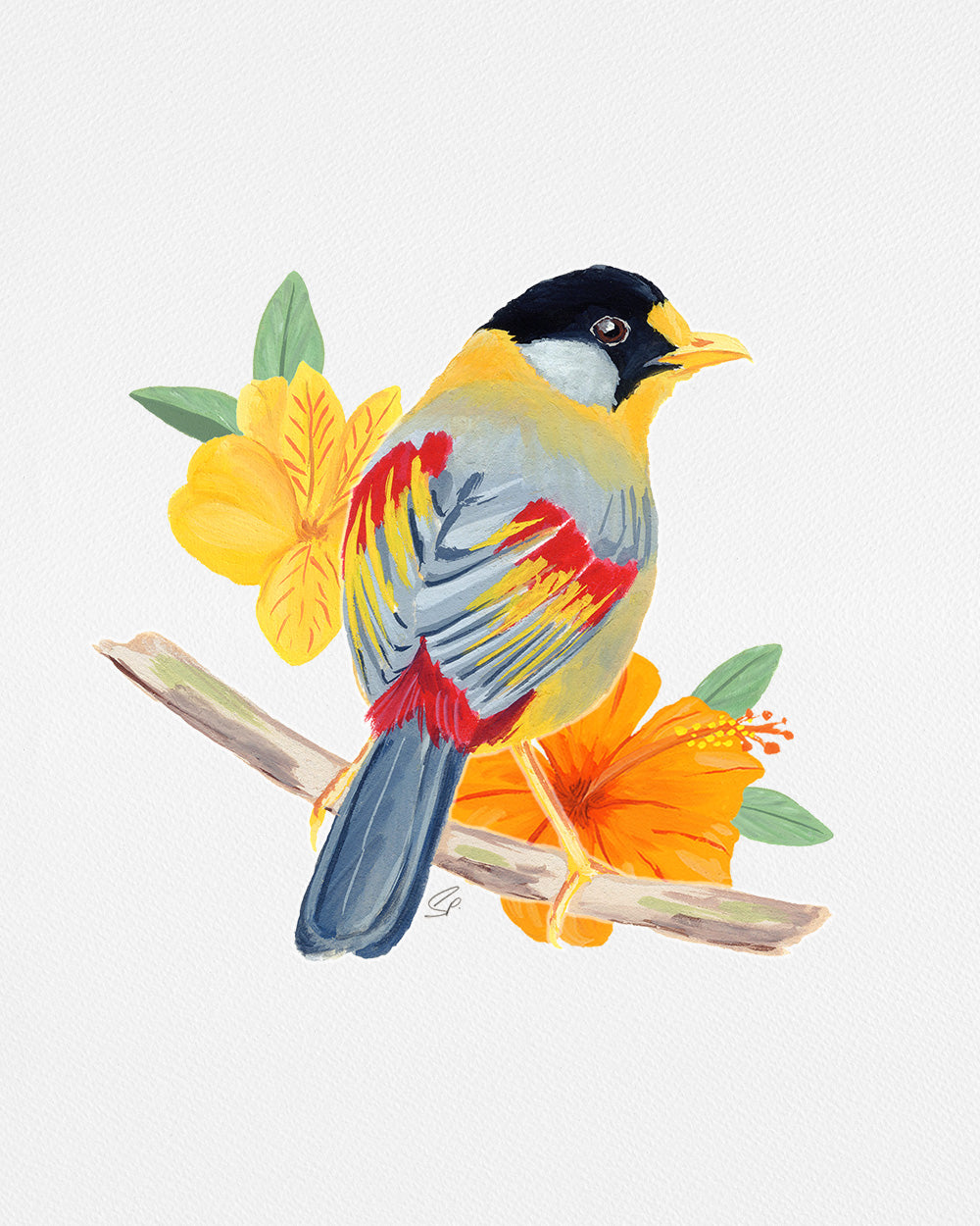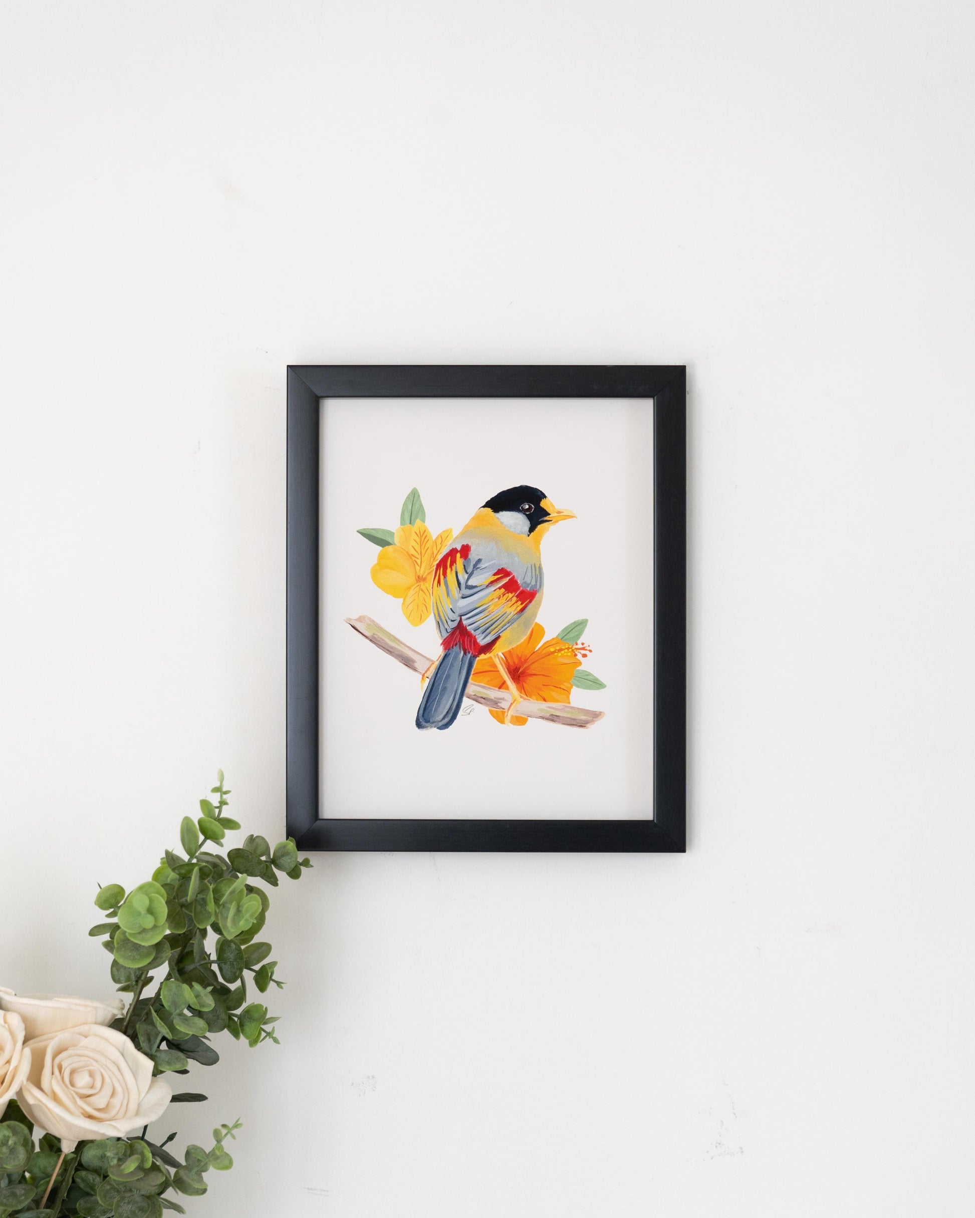 The Silver-eared Mesia is a true wonder of nature that fills the heart of any artist with admiration. It gets its name from its unique silver ear coverts, which are like tiny jewels adorning its otherwise striking black and yellow plumage. Found in the montane forests of Southeast Asia, this bird’s sociable nature and harmonious chorus of melodic calls add beautifully to the symphony of the forest.